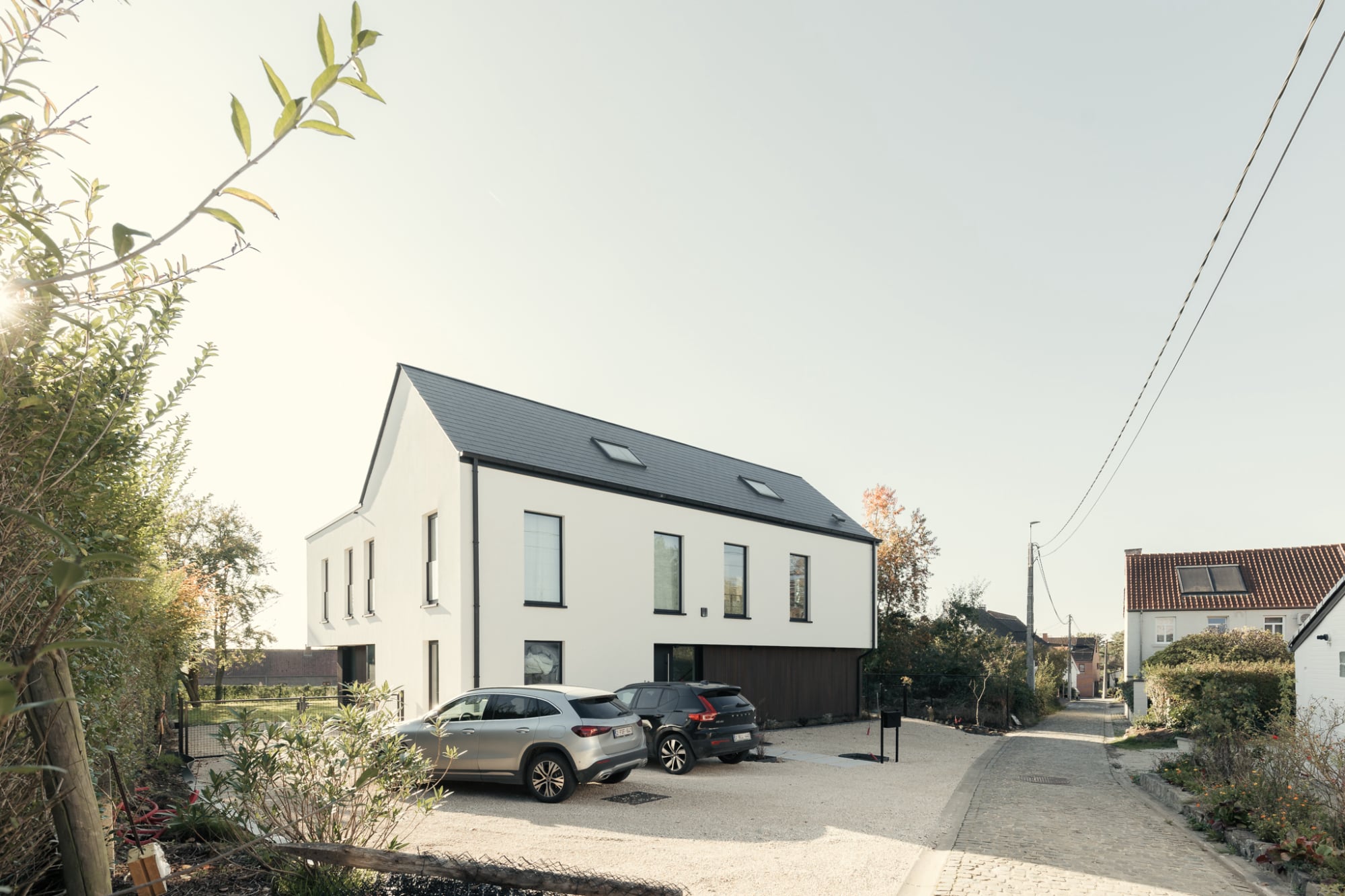 Admirée depuis la rue, la villa présente une volumétrie traditionnelle qui s'intègre parfaitement à son contexte bâti. Sa toiture en pente, les tuiles soigneusement choisies et la hauteur maîtrisée sous corniche rappellent les codes des habitations classiques environnantes. Ses ouvertures verticales, rythmées avec soin, apportent élégance tout en préservant l'intimité des espaces intérieurs.